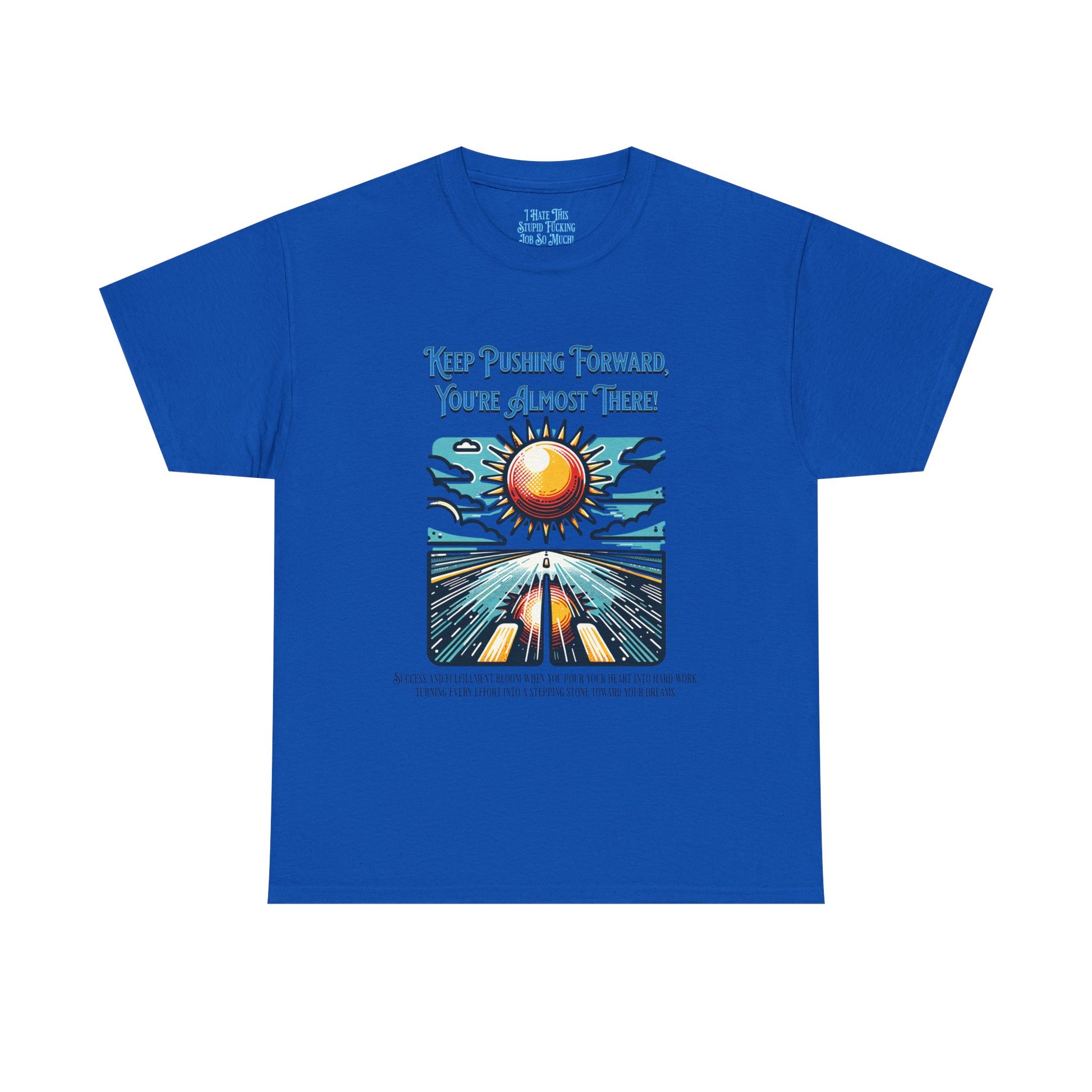 A humorous unisex tee with a hidden discrete message saying 'F this job' on the inner neck label. Perfect for those who appreciate inside jokes and want to add a touch of humor to their day while presenting as motivational and positive. Ideal for casual wear and can be a great conversation starter. Suitable for adults and relevant for holidays like April Fools' Day or casual Fridays at work.